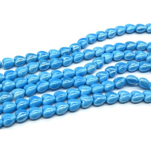 Бусины из керамики сердце 12*13мм цвет голубой, 36см, 30 бусин