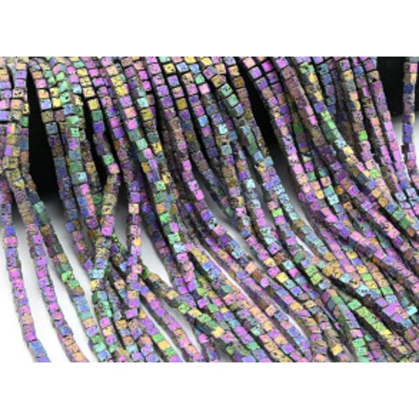 Бусины из лавы квадрат 5*5мм, цвет хамелеон, 41см, 90 бусин