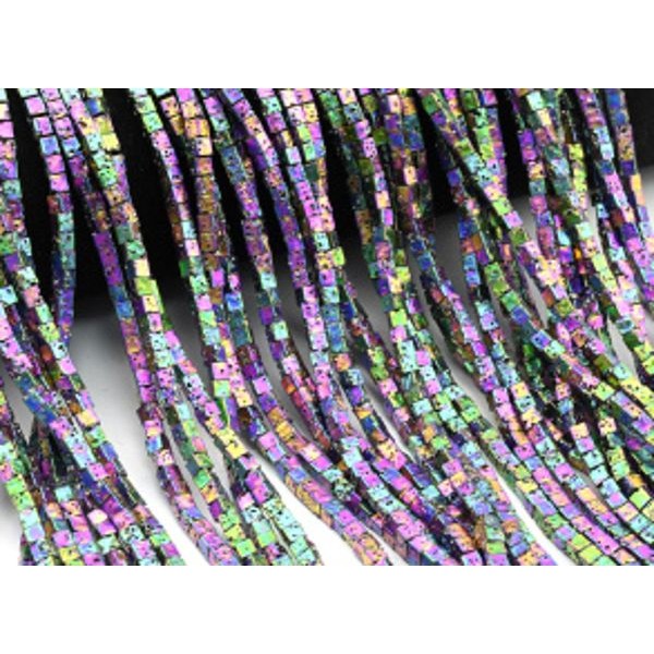 Бусины из лавы квадрат 3*3мм, цвет хамелеон, 41см, 115 бусин