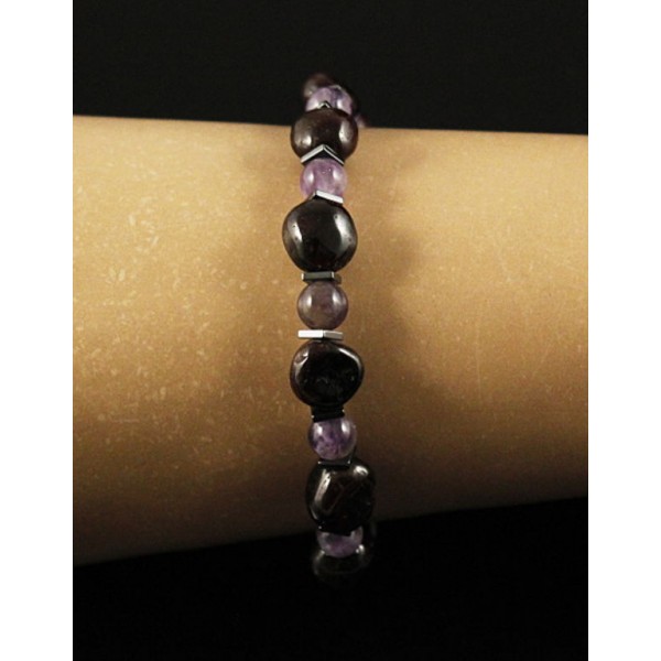 Браслет гранат (овалы), аметист (шарик) и гематит (квадрат)