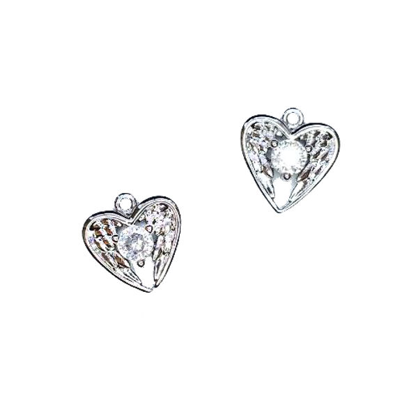 Подвеска Премиум Сердце с крыльями 13*12 мм с микроцирконом, цвет родий 1 штука