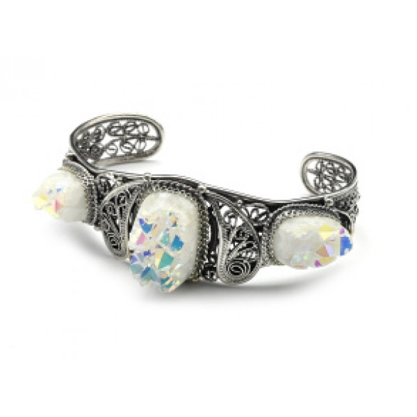 Браслет горный хрусталь щетка с титановым напылением, 20 см.