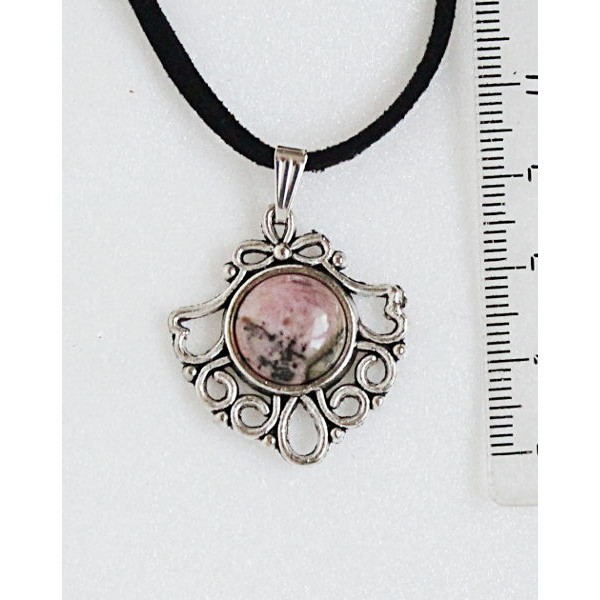 • Кулон из родонита, круг 12мм, оправа "балерина"