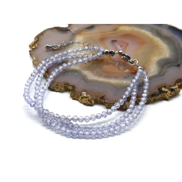 Браслет из фианитов шарик гр.3мм цвет сиреневый, 19см (иск.)
