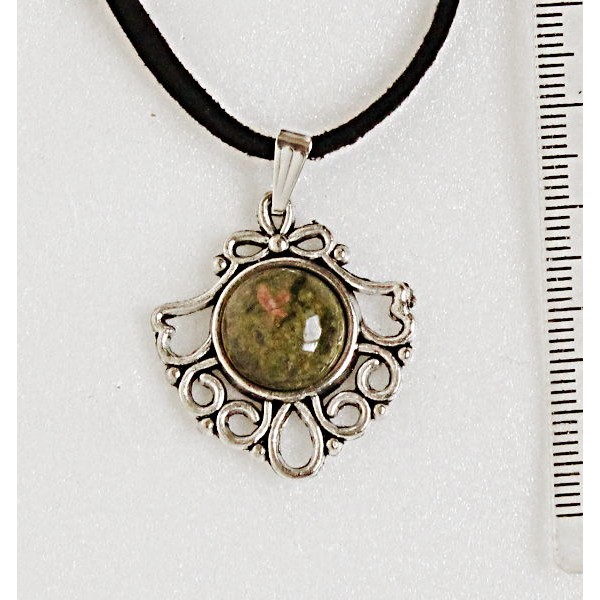 Кулон из унакита, круг 12мм, оправа "балерина"