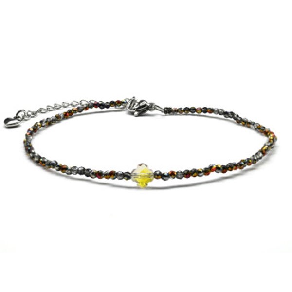 • Браслет на ногу из циркона шарик гр.2мм, цвет дымчато-золотой, 21см (иск.)
