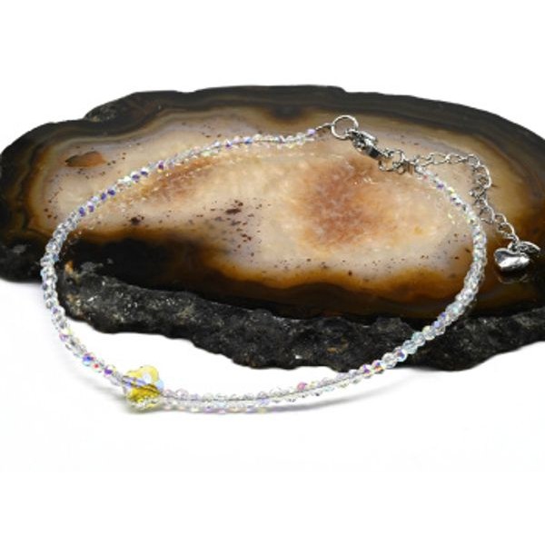 • Браслет на ногу из циркона шарик гр.2мм, цвет хрусталь хамелеон, 21см (иск.)