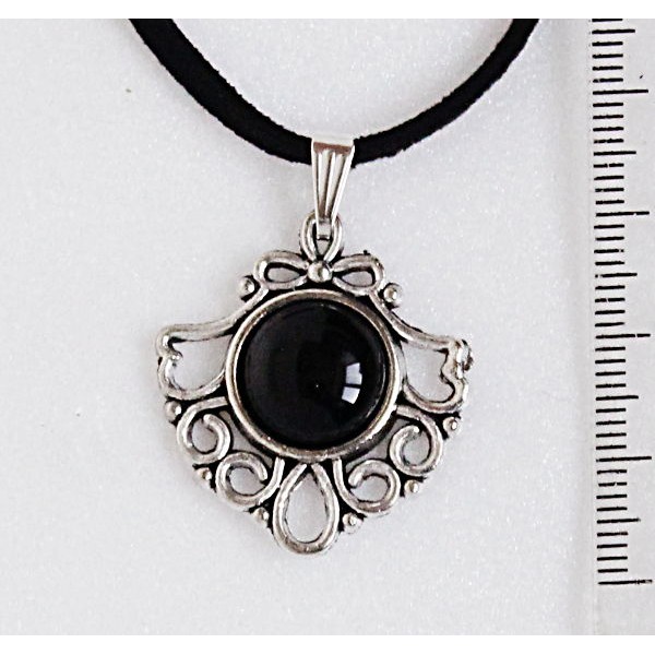 Кулон из агата черного, круг 12мм, оправа "балерина"