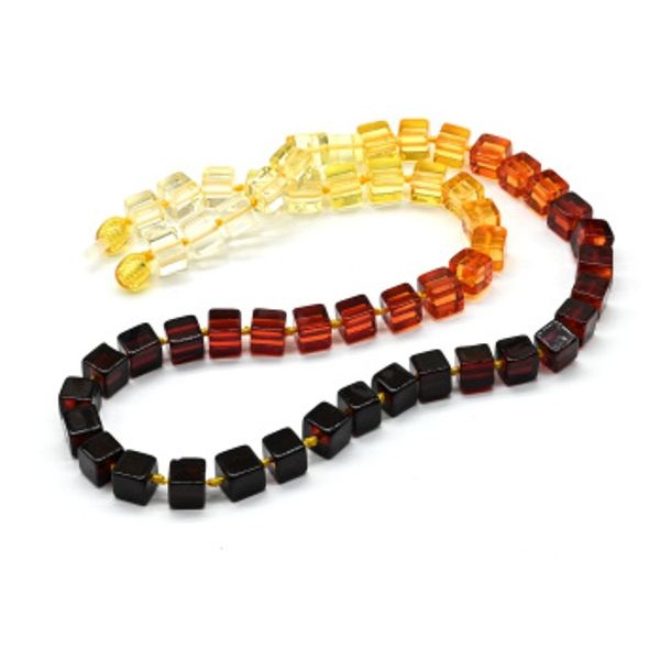 Бусы янтарные кубик 7мм радуга лимонный, св.вишня, вишня, 54см