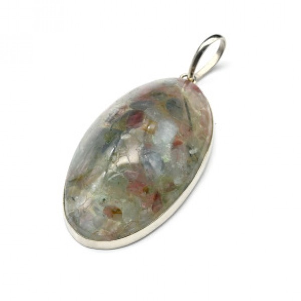 Кулон с янтарём мозаика в посеребрении овал 17*31м..