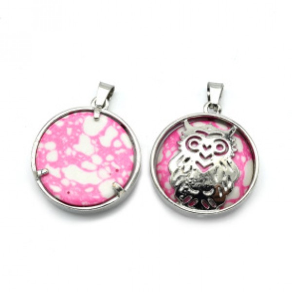 Кулон Сова 27*27мм с полимером цвет розовый (иск.)