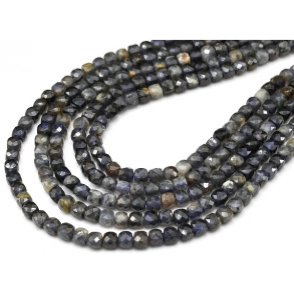 Бусины из иолита кубик гр.4мм, 39см, 95 бусин