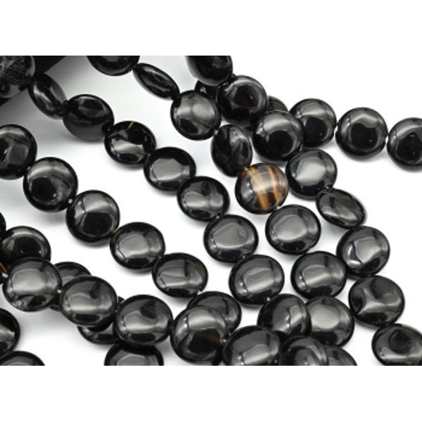 Бусины из агата черного круг 30мм, 40см, 15 бусин..