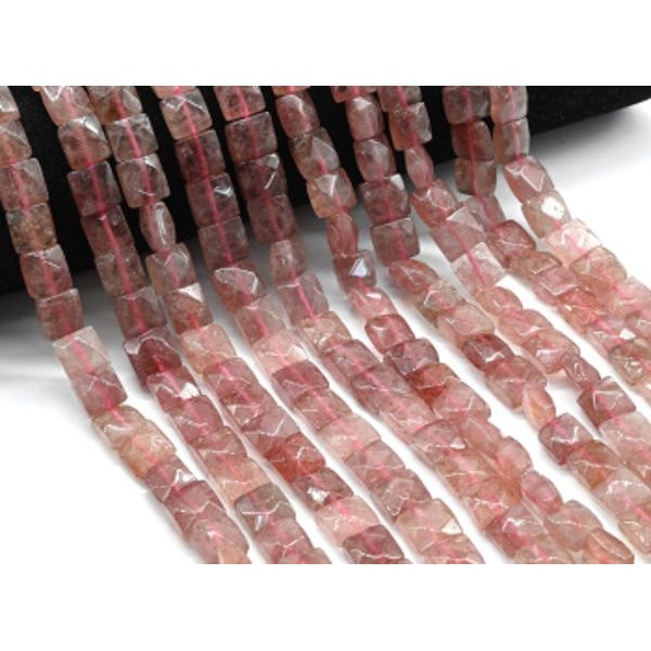 Бусины из клубничного кварца квадрат с гранями 10*10мм, 39см, 38 бусин