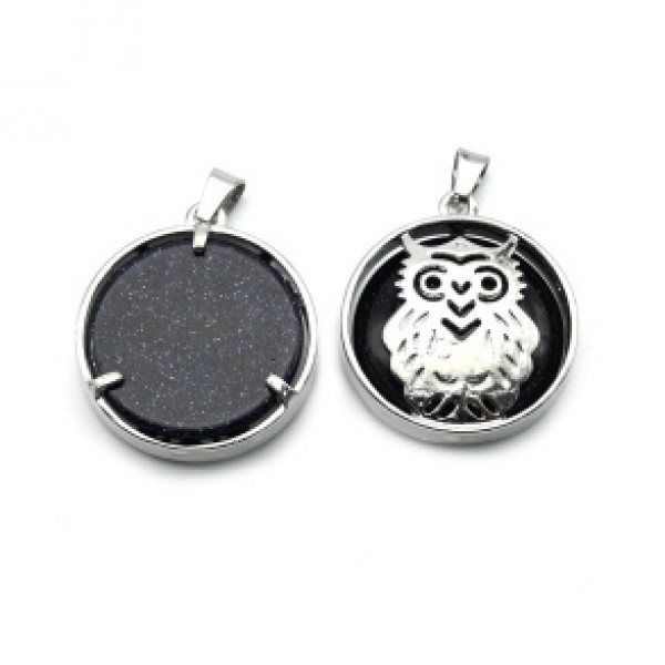 Подвеска Сова 27*27мм с авантюрином синим (иск.)