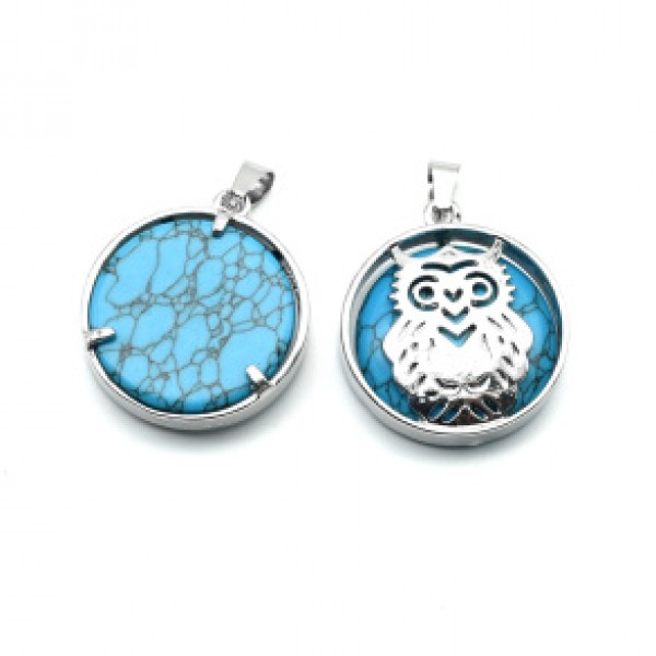 Кулон женский Сова с бирюзой иранской искусственной в металле 18*26мм