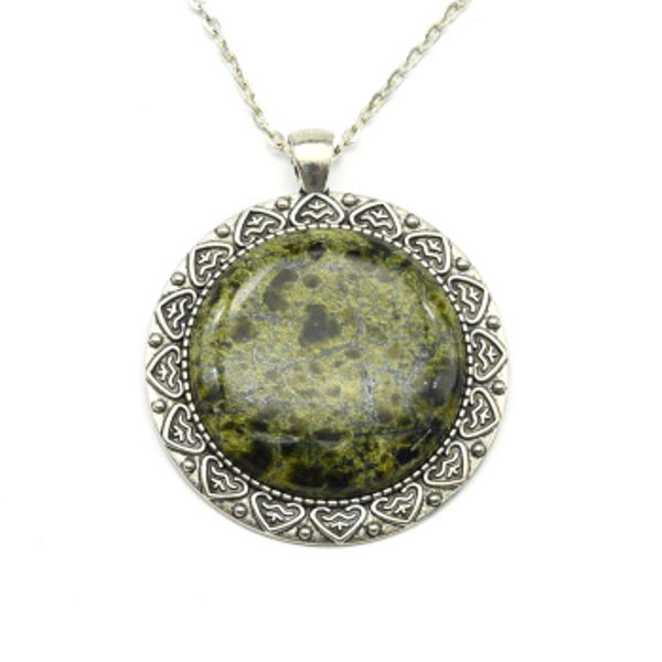 Кулон из змеевика,"роза", шарик яшма зелёная 6мм, круг 12 мм