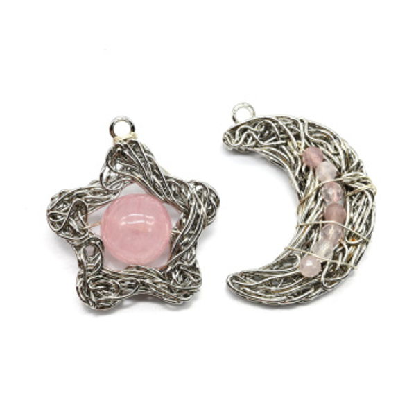 Комплект подвесок Полумесяц и Звезда из розового кварца