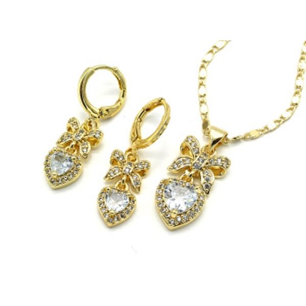 Серьги и Подвеска "Бант с сердцем" (иск.)