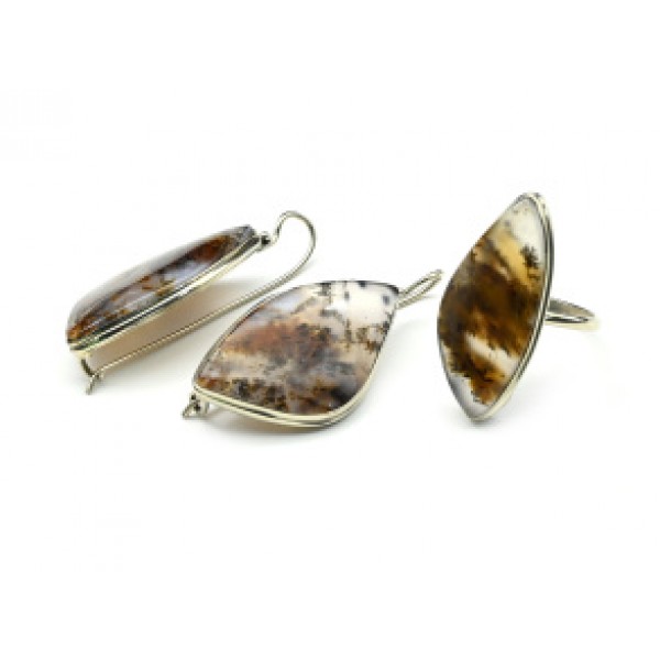 Кольцо и серьги агат моховой "Грация"
