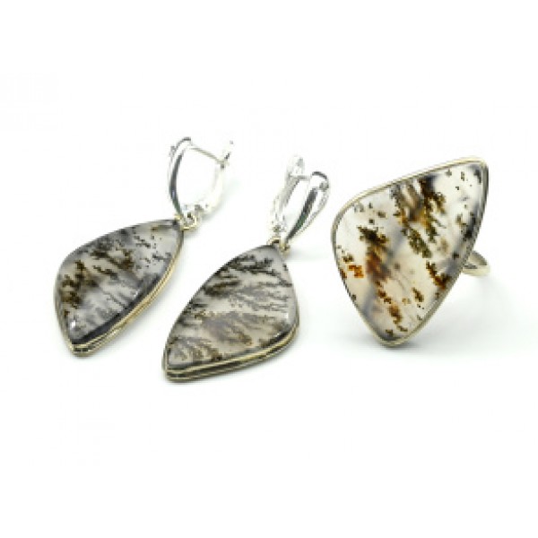 Кольцо и серьги с агатом моховым "Грация"
