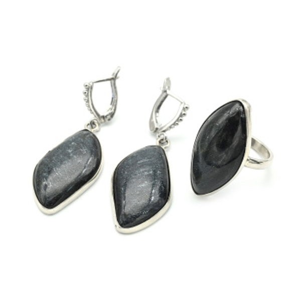 Кольцо и серьги из авантюрина (уткинит) "Грация"