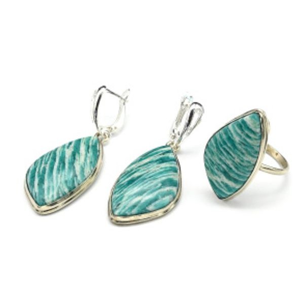 Кольцо и серьги с амазонитом " Прямоугольник "
