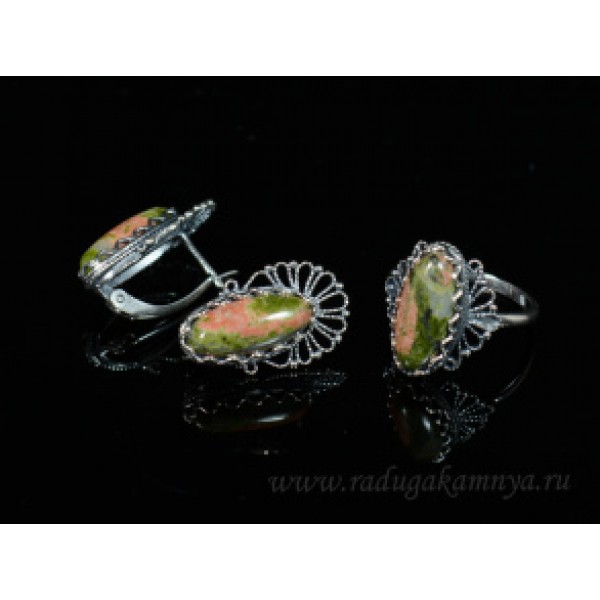 sg09-00210, sg09, sg09-, 09-, 09-00210, кольцо_и_серьги_с_унакитом, унакит, серьги_унакит
