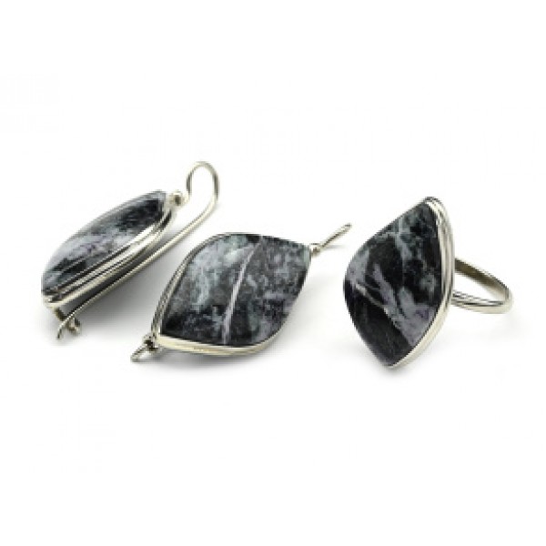 Кольцо и серьги из офита " Грация "