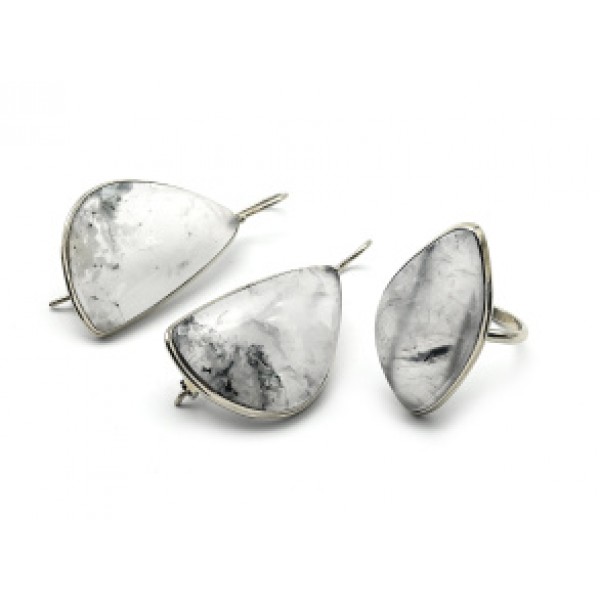 Кольцо и серьги льдистый кварц