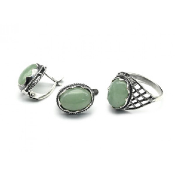 Кольцо и серьги с кварцем (имитация нефрита)..