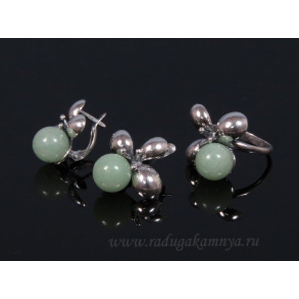 Кольцо и серьги с кварцем (имитация нефрита)..
