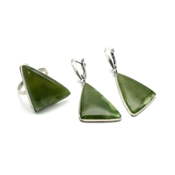 Кольцо и серьги нефрит кошачий глаз "Грация"