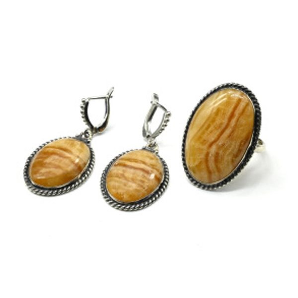 • Кольцо и серьги оникс медовый "Овал"