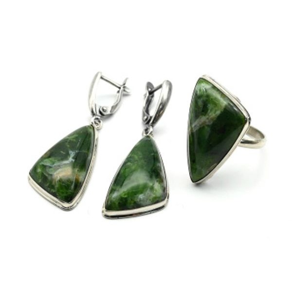 Кольцо и серьги с опалом зеленым (хромопал) "Грация"