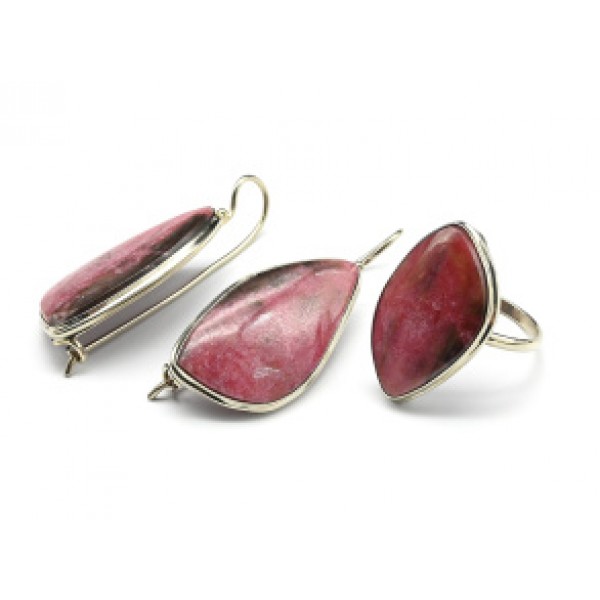 Кольцо и серьги из родонита грация..