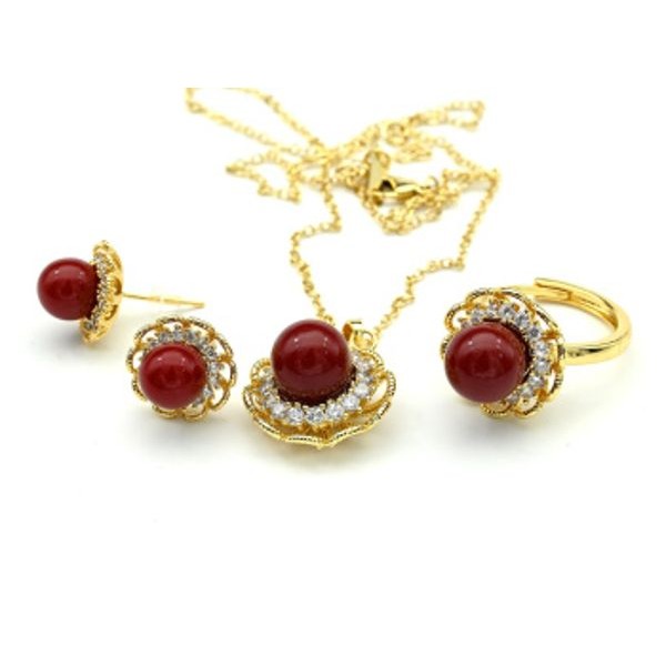 Комплект украшений Кольцо, серьги, кулон с сердоликом (имитация) и цирконом