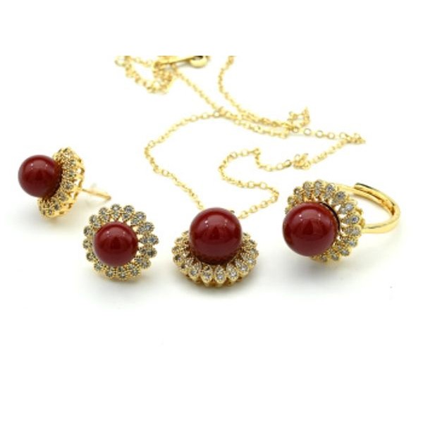 Комплект украшений Кольцо, серьги, кулон с сердоликом (имитация) и цирконом
