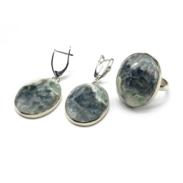 Кольцо и серьги с флюоритом "Овал"