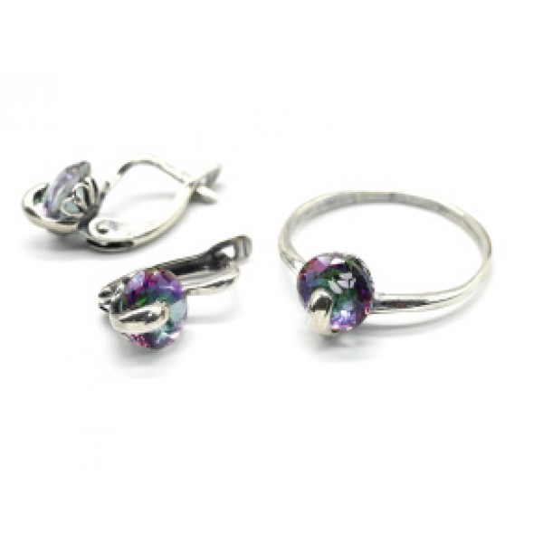 Кольцо и серьги циркон искусственный, цвет хамелеон