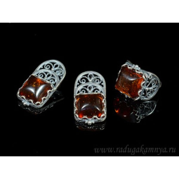 Кольцо с янтарём в посеребрении "нежность" 10*12мм..