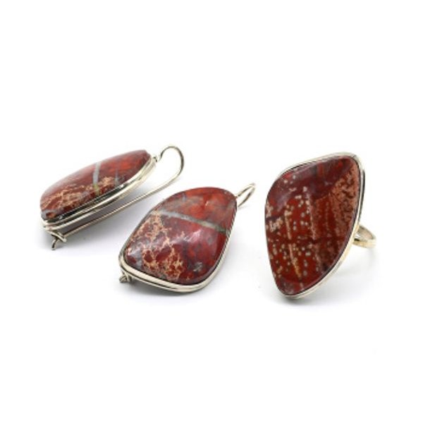 Брошь с яшмой в посеребрении " Грация " 68*35мм..