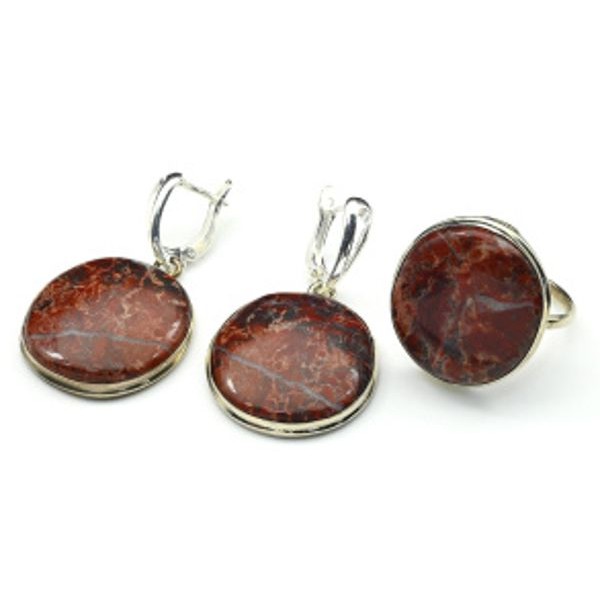 Кольцо и серьги с яшмой "Овал"