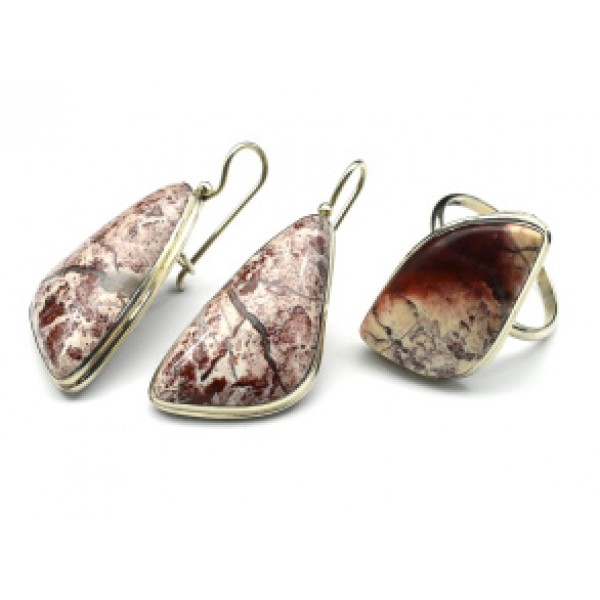 Брошь с яшмой в посеребрении " Грация " 68*35мм..