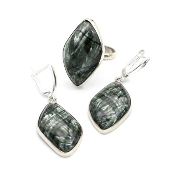 Кольцо и серьги серафинит "Грация"