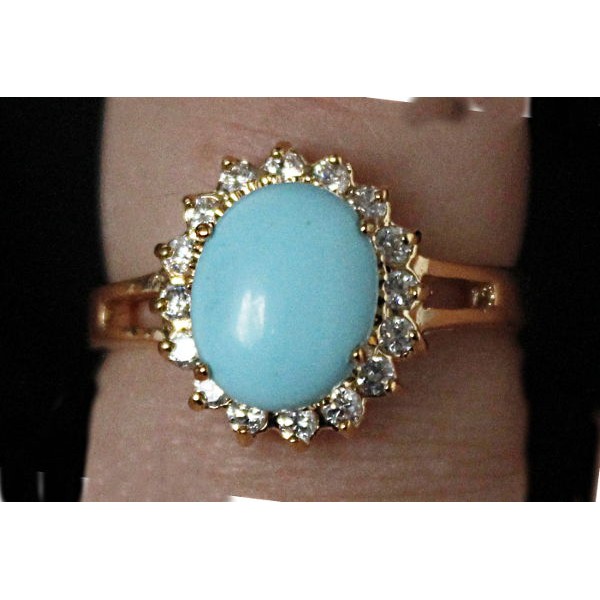 C830 Кольцо позолоченное с бирюзой (имитация) "овал в цирконах"