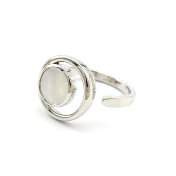 Кольцо Круг с перламутром, серебристое