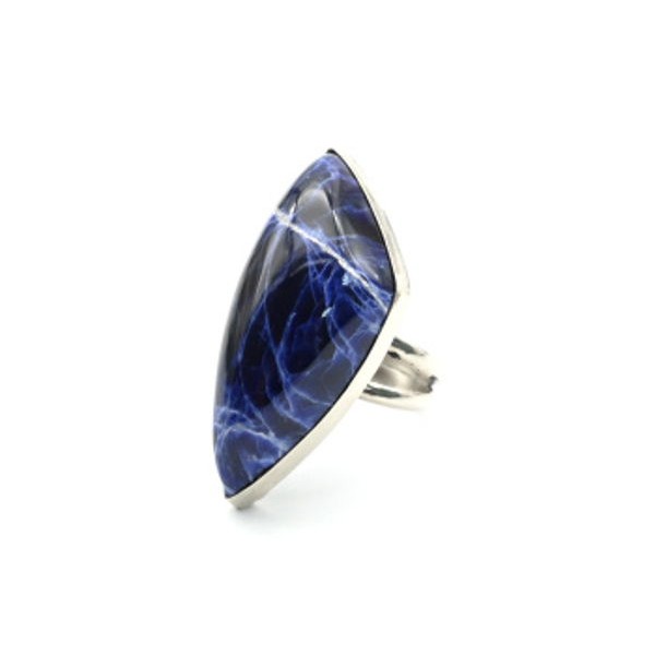 Кольцо с содалитом, овал 18x13, литая оправа, безразмерное