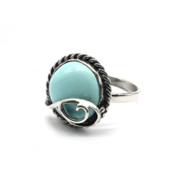 Кольцо с бирюзой (имитация) овал 10*14мм (иск.)