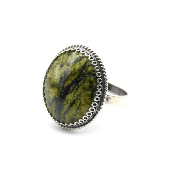 Кольцо змеевик, розовый кварц "Смородина", 27*30мм.